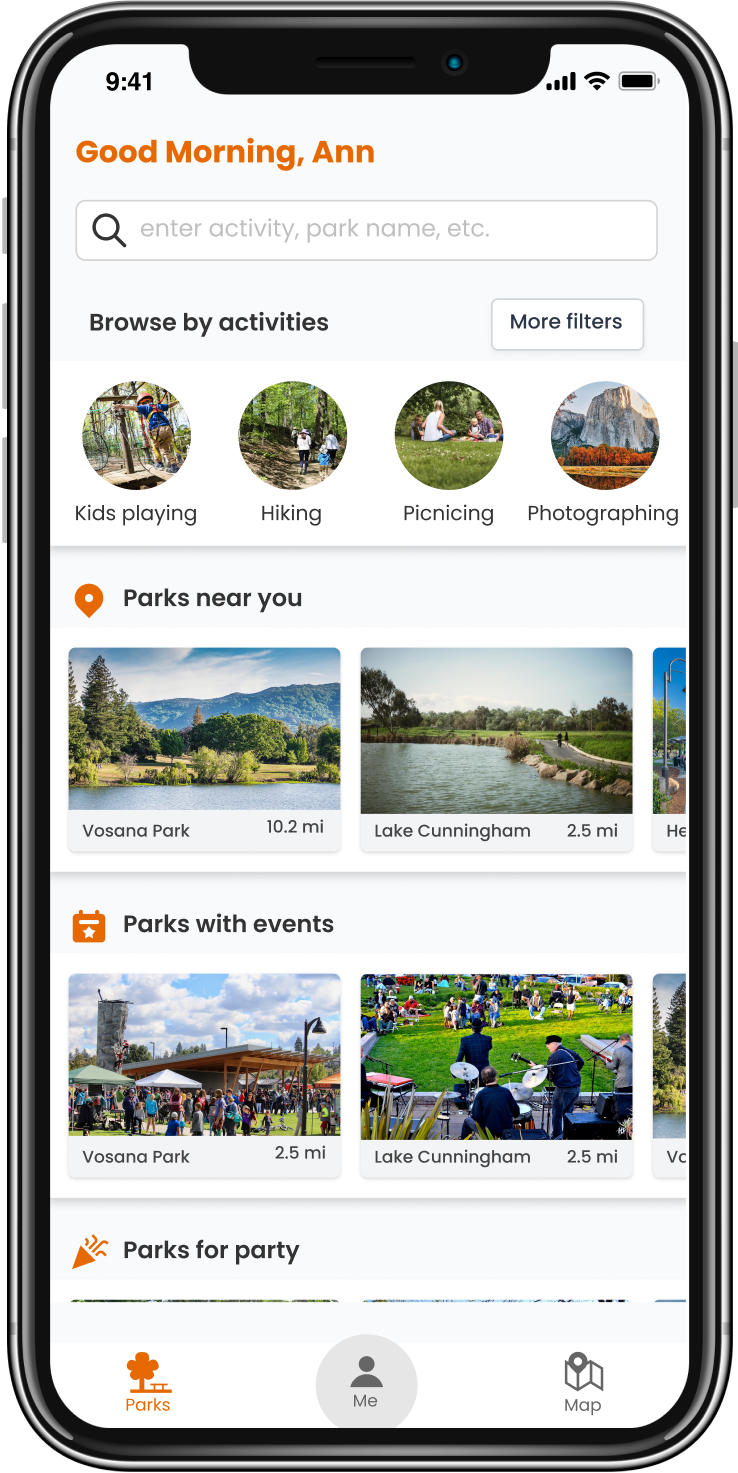 How might we help users find parks suitable for their planned activities in an efficient and accurate manner?