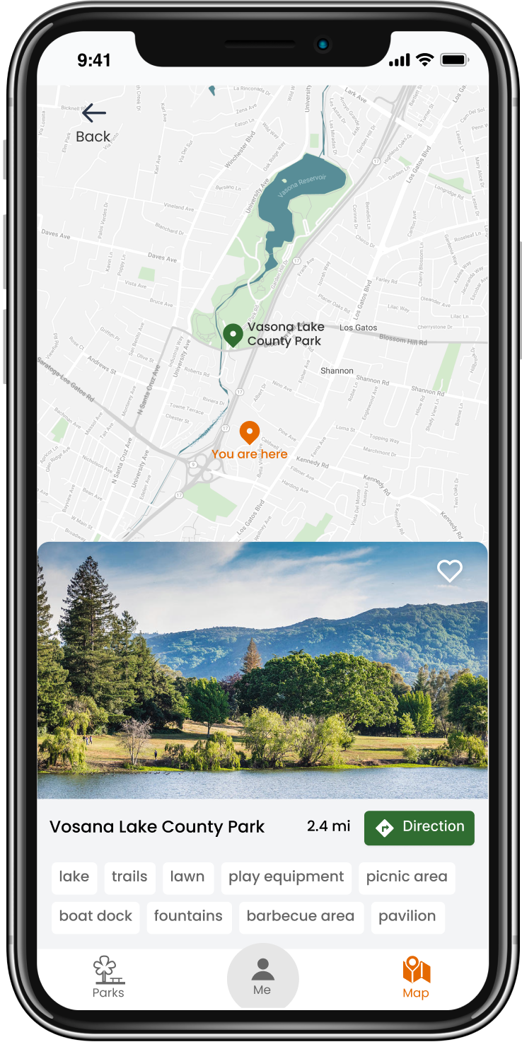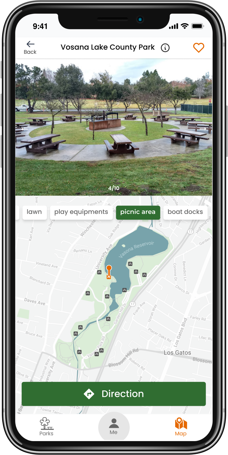 Today is Sunday and the weather is nice, you want to go to the park with your family, have some relaxing time on the lawn, maybe a simple picnic and also have the kids enjoy some fun time at playground. Now you need to find a park fit your plan and and the best parking lot convenient for your plan and start navigation.