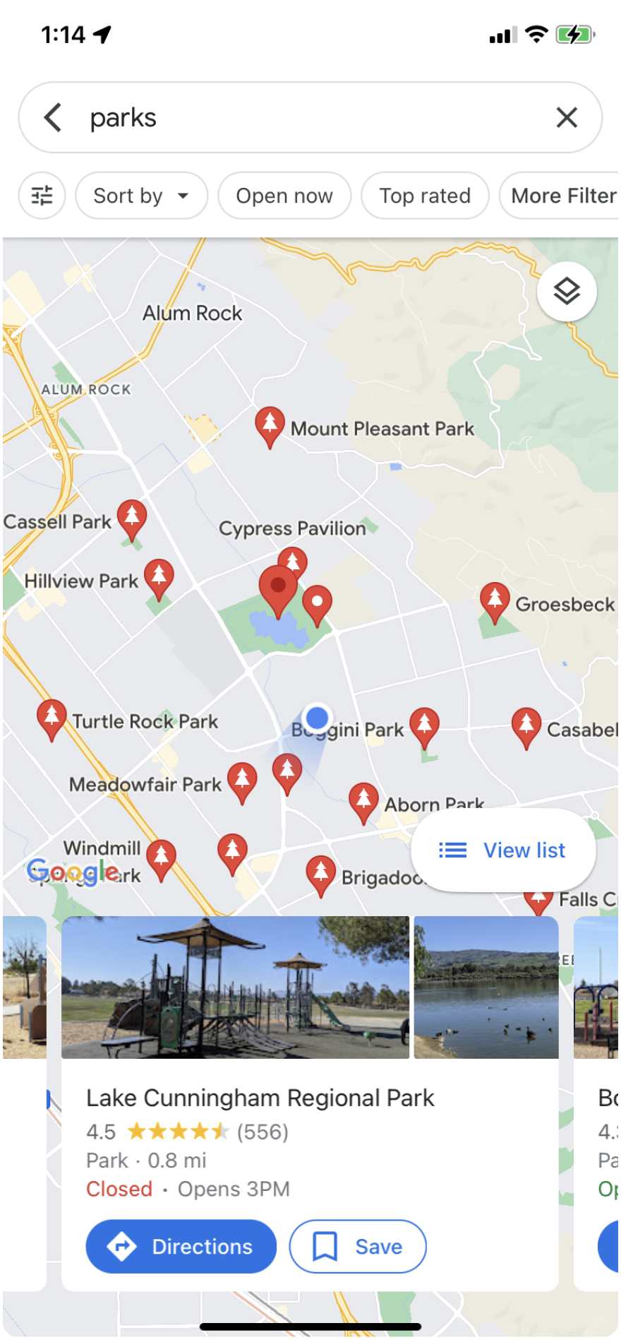 A list view or group of dots on map fails to provide enough information for users to find parks meet their needs.